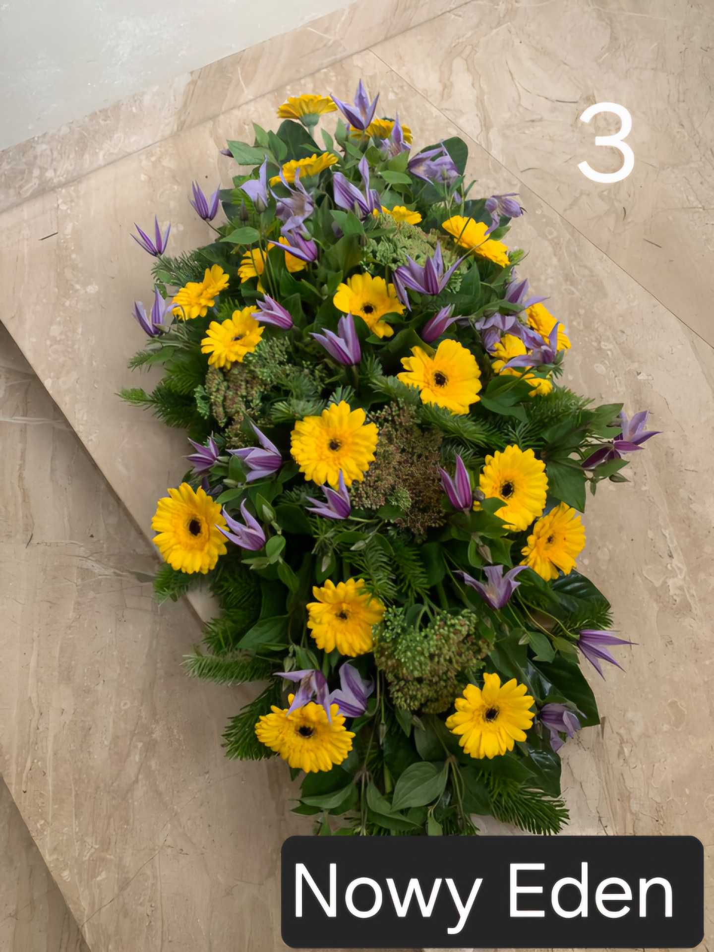 Floryści z firmy Nowy Eden z łatwością dobiorą dowolne kwiaty i rośliny, układając je w najbardziej wymyślne formy. Jest to idealne rozwiązanie dla osób, które poprzez wiązankę pogrzebową czy bukiet chcą odzwierciedlić niepowtarzalny indywidualizm zmarłego.